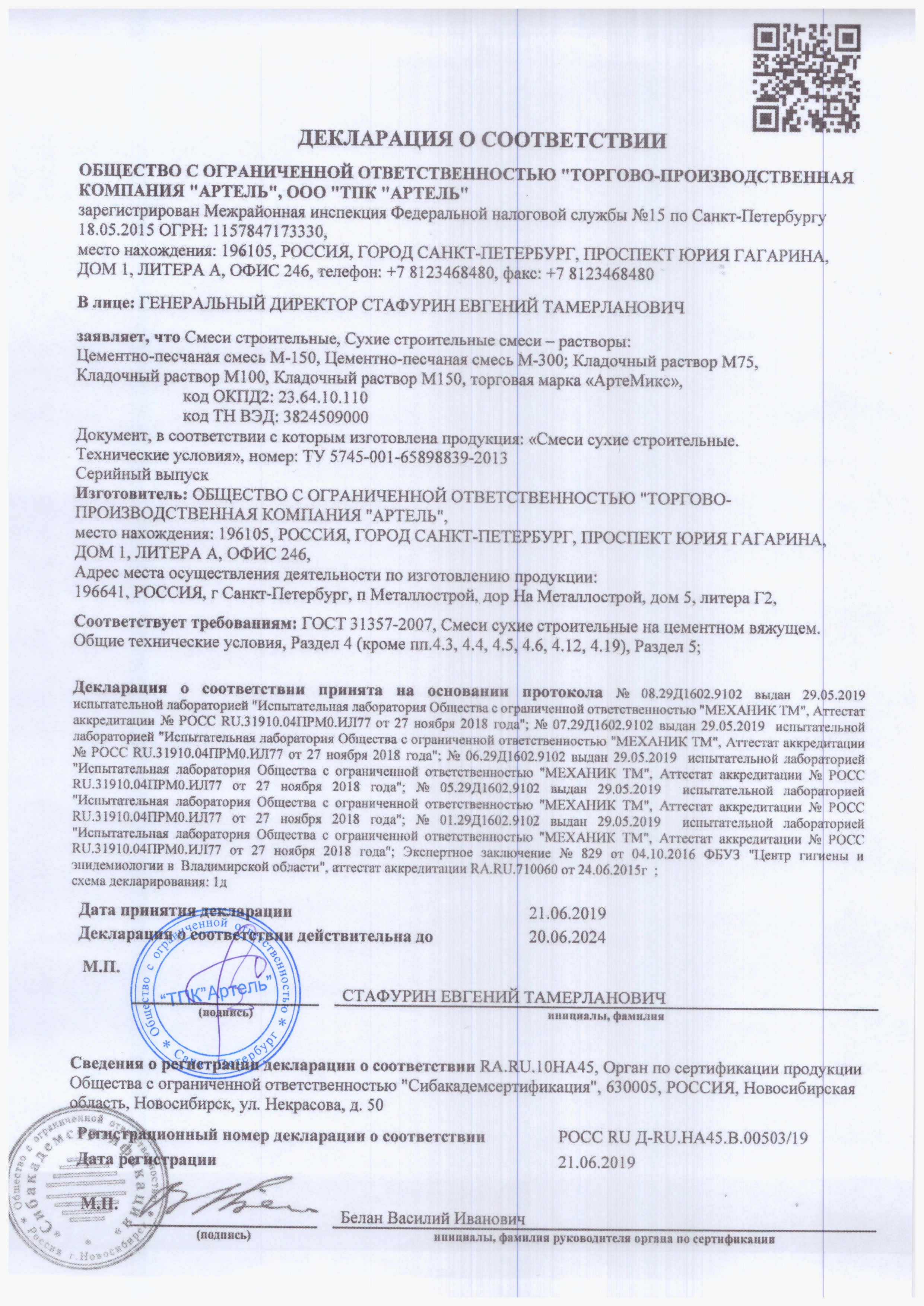 Смесь цементно-песчаная АртеМикс ЦПС М300 25 кг
